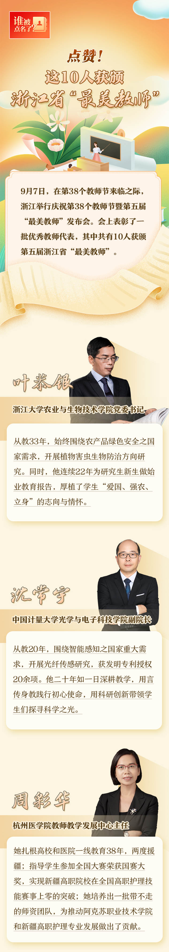 浙江省“最美教师”名单出炉