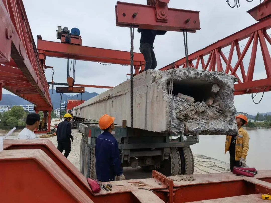 望江门大桥改造工程自9月16日启动以来,先后完成路灯、护栏、管线等附属基础设施拆除作业,为梁板拆除施工创造了有利条件。在进行首片空心板梁吊装前,临海市住房和城乡建设局对各个环节进行详尽部署,以确保拆除任务安全高效完成。