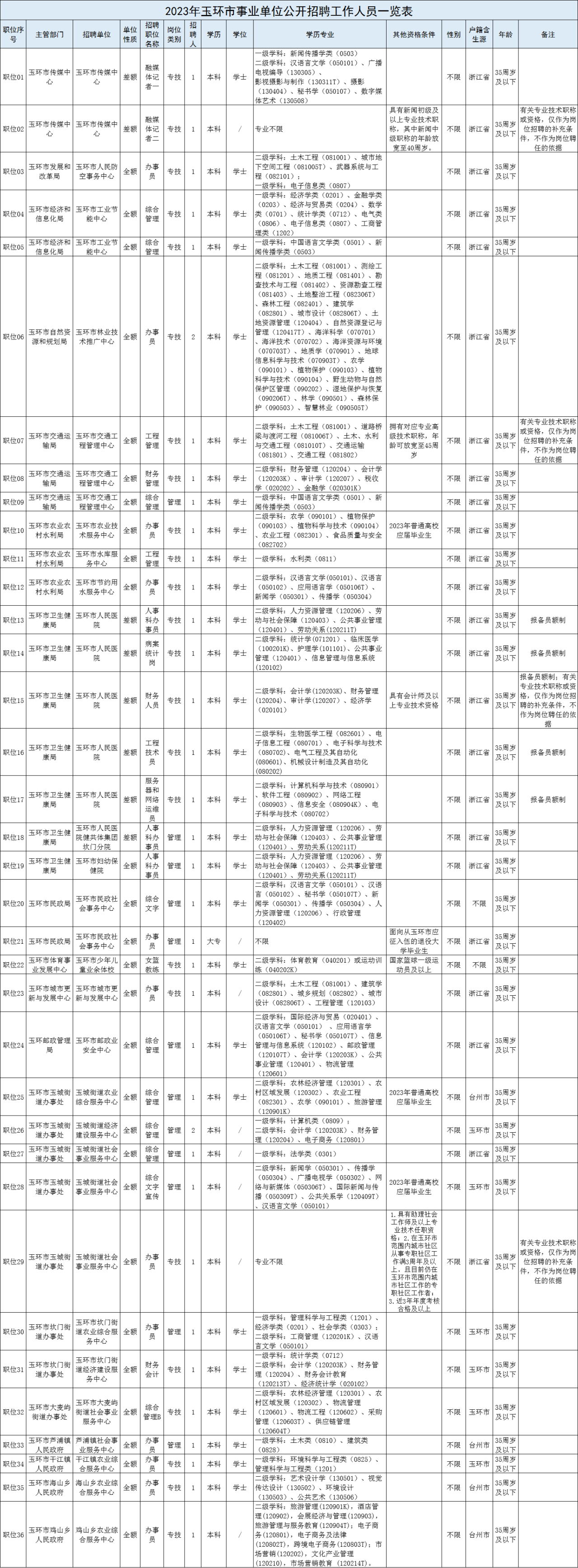 扫码下载《2023年玉环市事业单位公开招聘工作人员一览表》