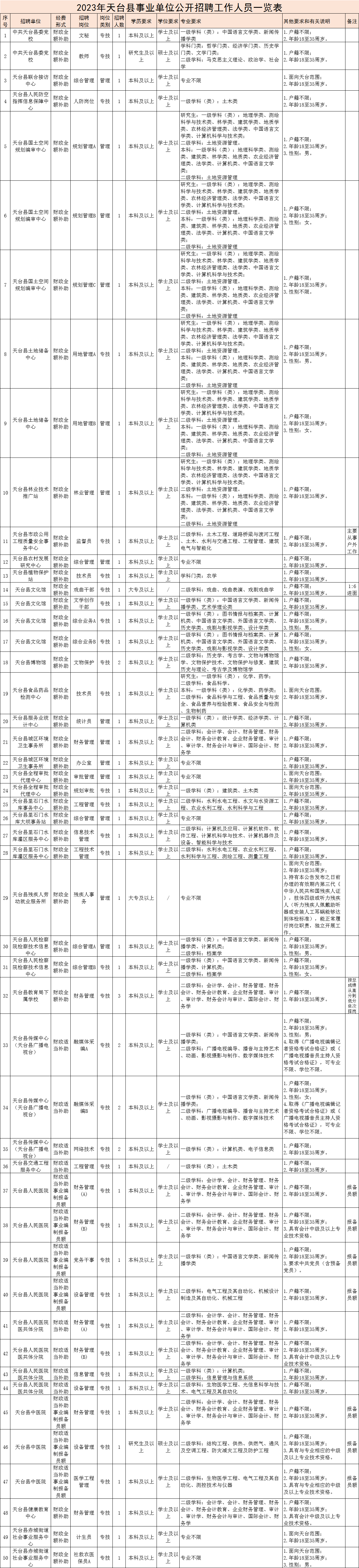 扫码下载《2023年天台县事业单位公开招聘工作人员一览表》