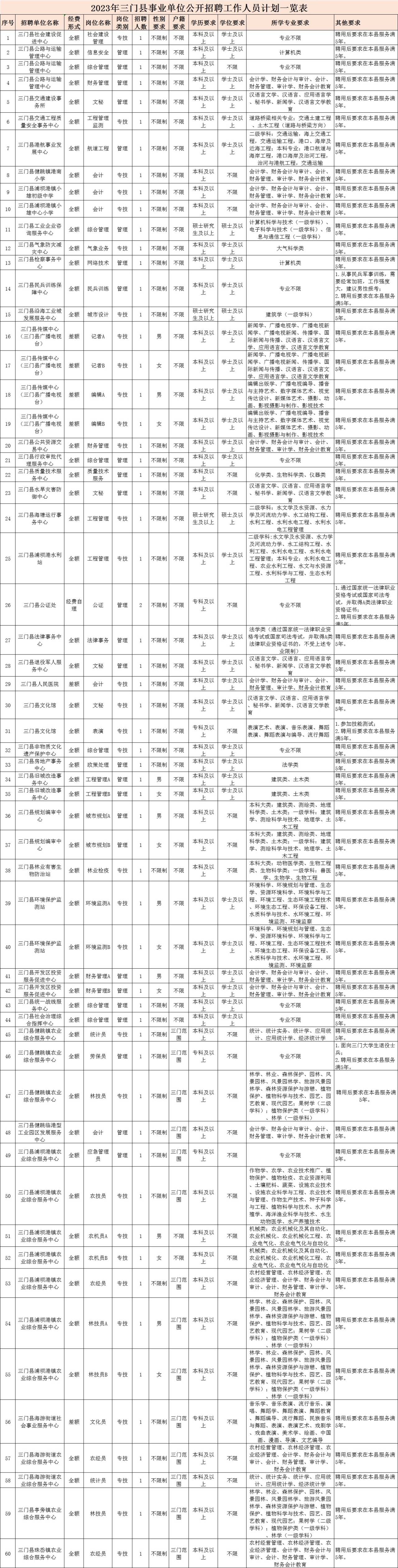 扫码下载《2023年三门县事业单位公开招聘工作人员计划一览表》