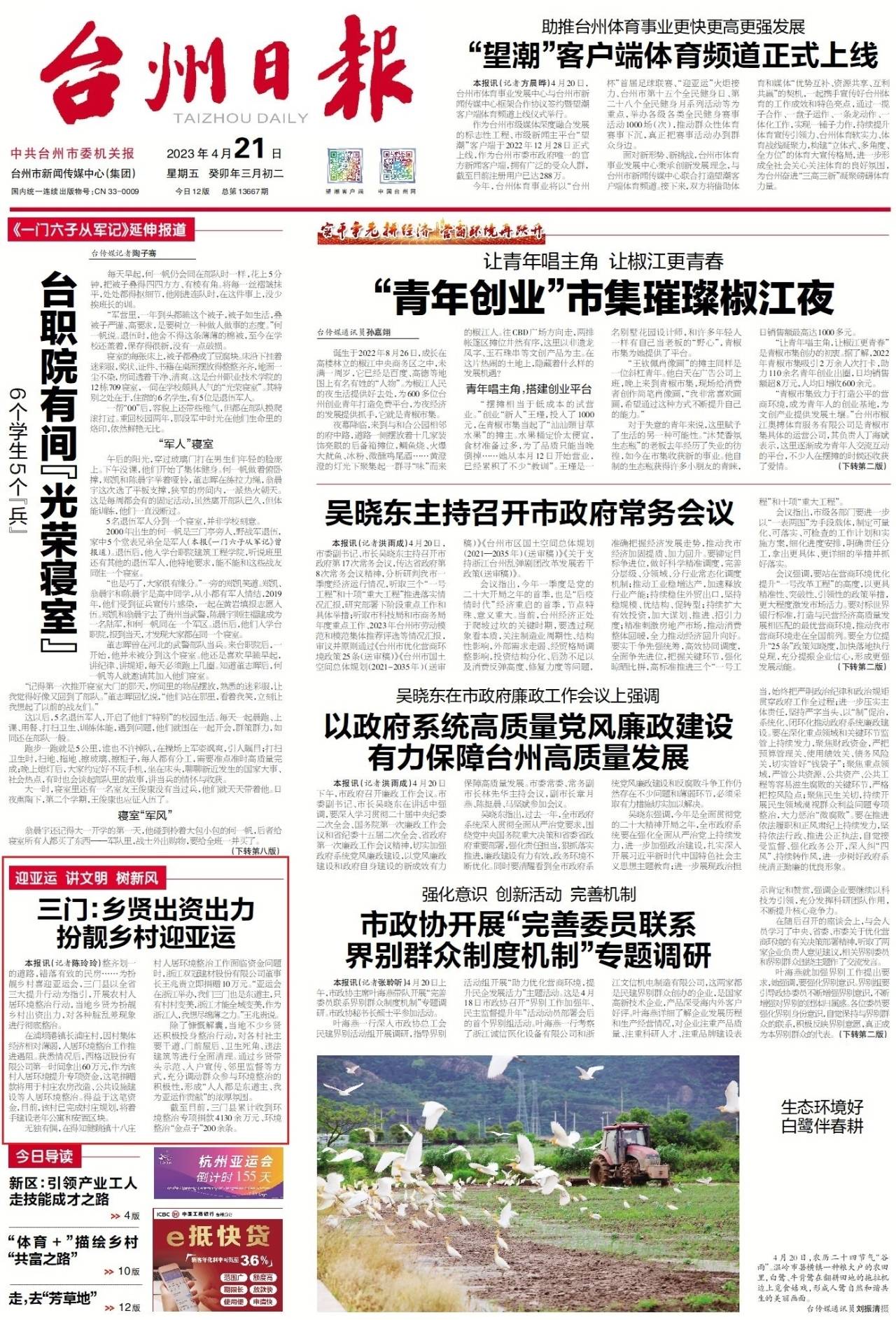 截至目前,三门县累计收到环境整治专项捐款4130余万元、环境整治“金点子”200余条,“人人都是东道主、我为亚运做贡献”的良好氛围愈加浓厚。