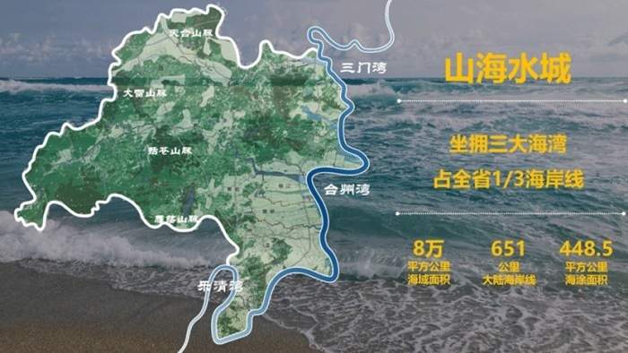 台州是沿海重要城市,在浙江省六大重点湾区中独占三湾,拥有全省三分之一的大陆海岸线、五分之一的海岛,沿海海岸线长达651公里,近海有12个岛群、691个岛屿,经过6个县(市、区)的20多个乡镇。