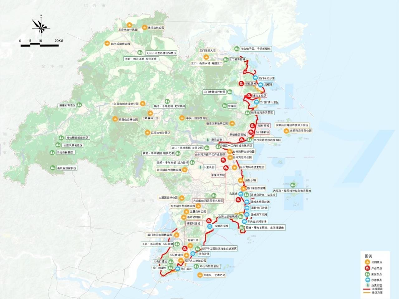 其次按照“交通+生态”融合发展原则。最大限度保护沿线自然生态,依山、就势、临海,充分展现台州最美的海湾、岸线、沙滩、海岛、海洋生物等生态资源景观,培育滨海旅游休闲消费新模式,打造最具台州特色的滨海旅游经济带。