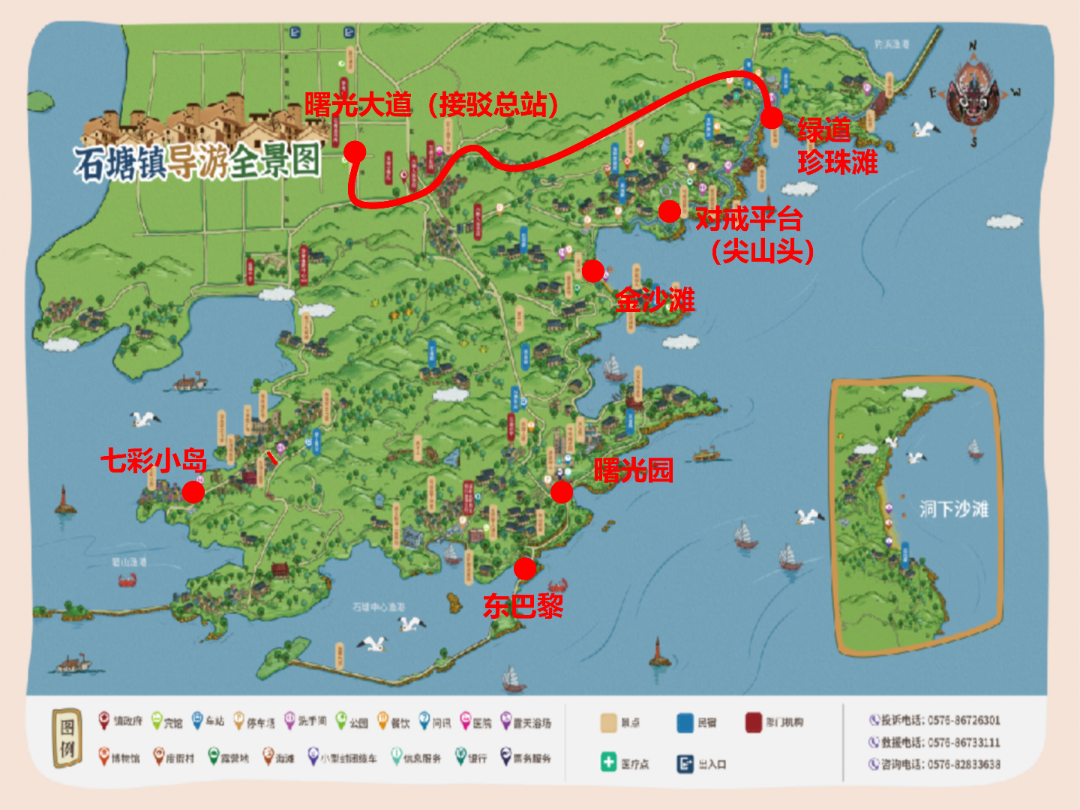 温 岭 为加强“五一”期间石塘半岛交通组织与管理,保障道路交通安全、有序、畅通,根据《中华人民共和国道路交通安全法》第三十九条之规定,现将“五一”期间石塘半岛曙光园、东巴黎、金沙滩、绿道珍珠滩、对戒观景平台(尖山头)、箬山七彩小岛方向交通组织调整公告如下: