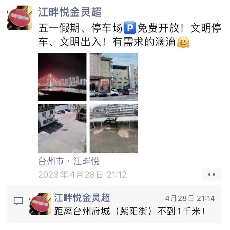 4月28日晚上,家住江滨路的金灵超发了一条朋友圈,将自己约6亩大的院子免费对外开放,“五一”期间欢迎游客朋友们停车。