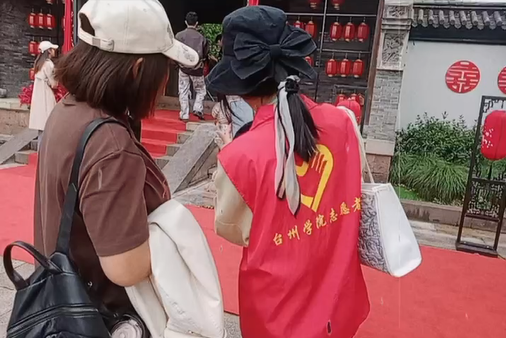 这几天,走在台州府城文化旅游区内,“红马甲”格外醒目。