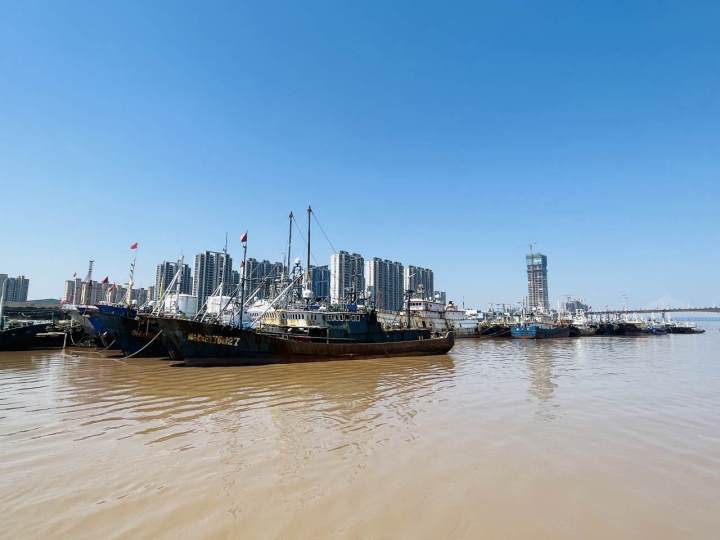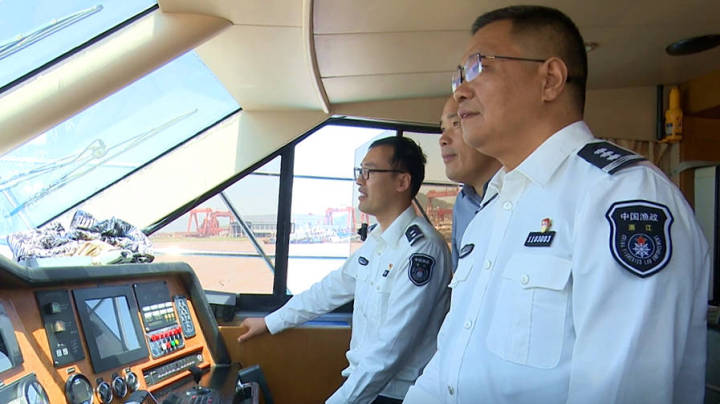 从5月1日12时起 东海正式进入伏季休渔期 目前,台州市3934艘渔船已全部按时归港 上午10点半,台州市海洋与渔业执法队执法人员在椒江口海域开展巡航执法检查,对该区域渔船回港情况,海上秩序、沿岸非法渔具清理等情况进行巡查。