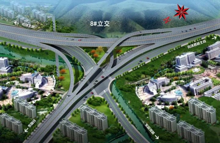 内环线8号立交放射线工程南起内环线,北至82省道,连接内环路和二环东路高架,建设高架主线长832米,宽18.5至25.5米,匝道长约2110米,宽8至9.7米。