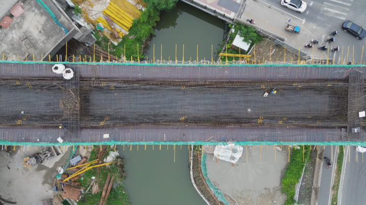 目前,项目正抓紧进行A、B匝道和主线交汇处支架搭设。预计今年7月底A、B匝道与主线桥贯通。