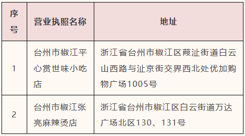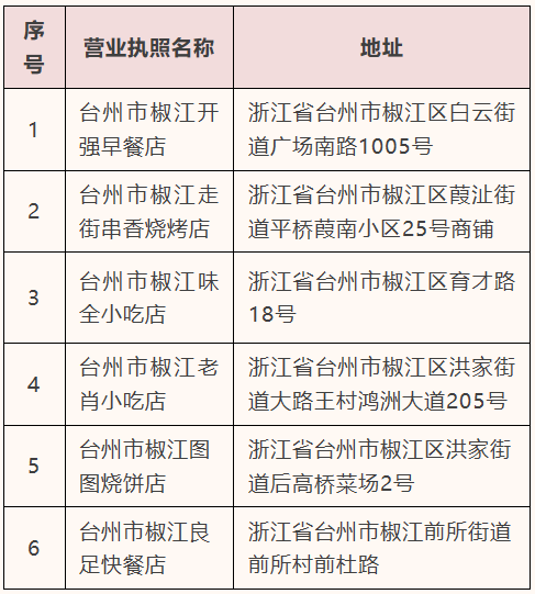 椒江第13期 餐饮红黑榜发布 一起看看哪些小吃店上榜 红榜 共计2家