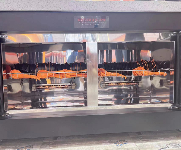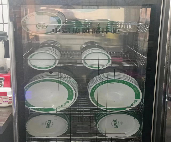 3.餐具整齐摆放在消毒柜内进行消毒;