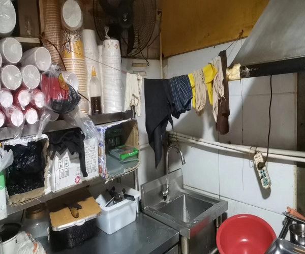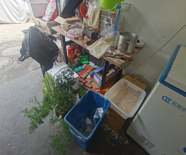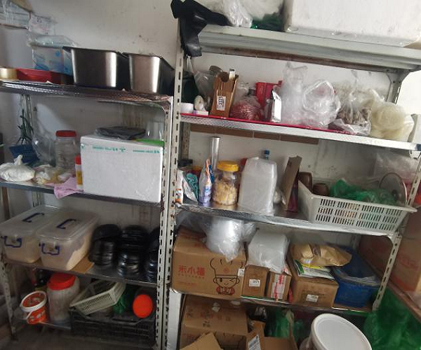 地址:浙江省台州市椒江区洪家街道大路王村鸿洲大道205号问题:1.物品摆放杂乱,食品与私人物品混放;
