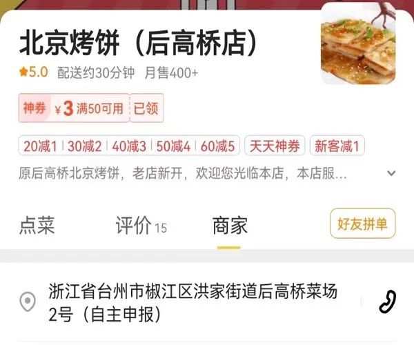 店铺招牌:北京烤饼外卖店名:北京烤饼