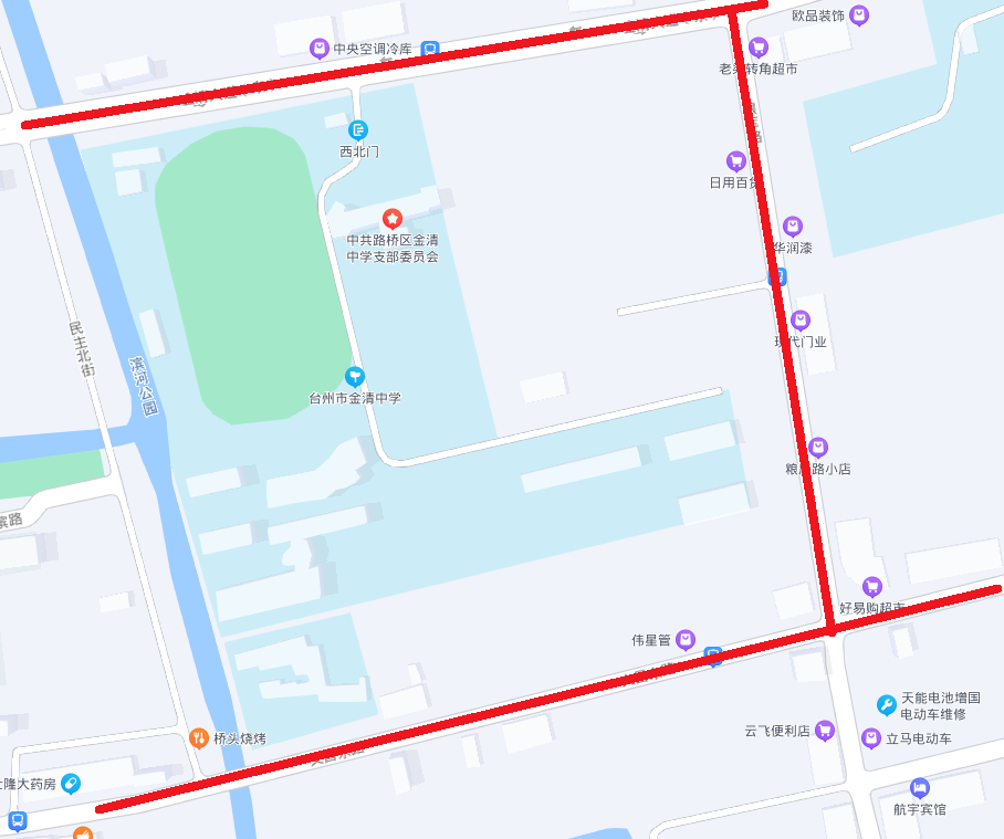 管制路段:金清大道(人民路路口至金清粮库路路口路段)、粮库路(金清大道至文昌路路口路段)、文昌路(民主街路口至粮库路路口路段)。