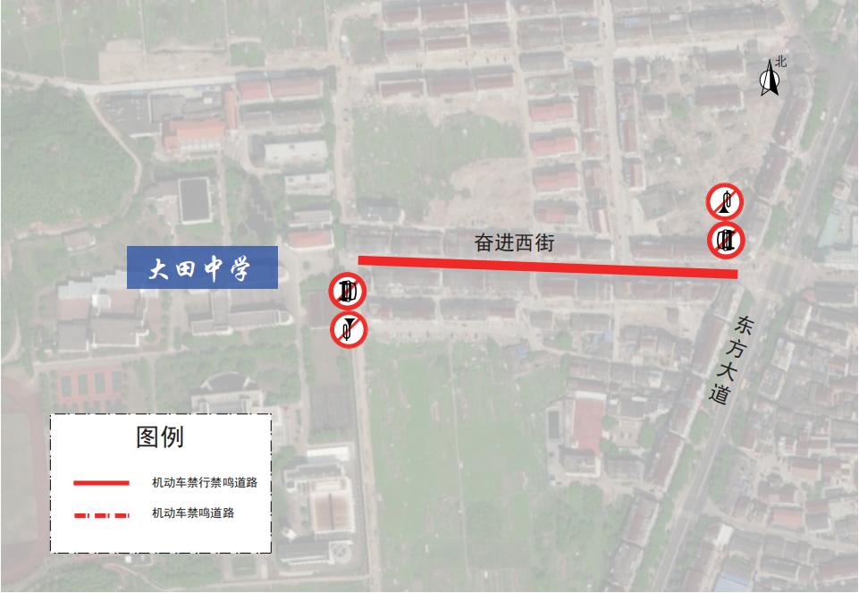 管制路段:大田街道奋进街(东方大道至大田中学大门口路段)禁行、禁鸣。