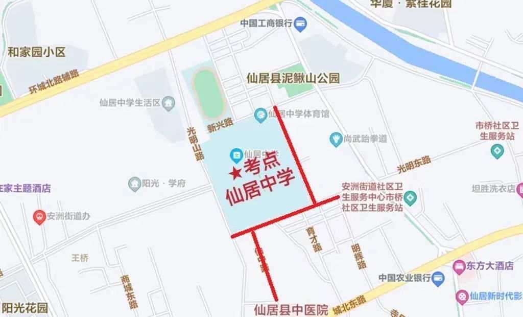 管制路段:光明西路(自东往西单向通行)、学子路路口至仙中路口(自北往南单向通行)、仙中路(自北往南单向通行)。