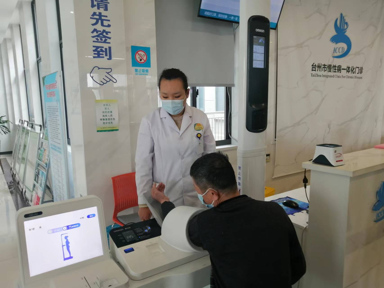 近日,记者来到椒江区下陈街道社区卫生服务中心的慢性病一体化门诊,映入眼前的是干净、舒适环境,“在诊前服务区,患者可完成体温、血压、身高、体重、腰围、体质指数等数据采集,在一体化门诊可得到诊前、诊中、诊后一站式规范化服务。”下陈街道社区卫生服务中心主任苏华琴说。