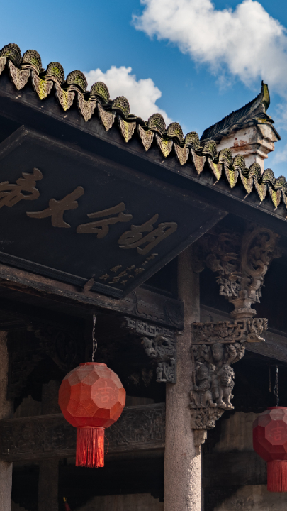 门堂宅院 皤滩民居为典型的四合院住宅。四面合围,走廊迂回,有飞檐、瓦当、斗拱等都有不同的雕饰。