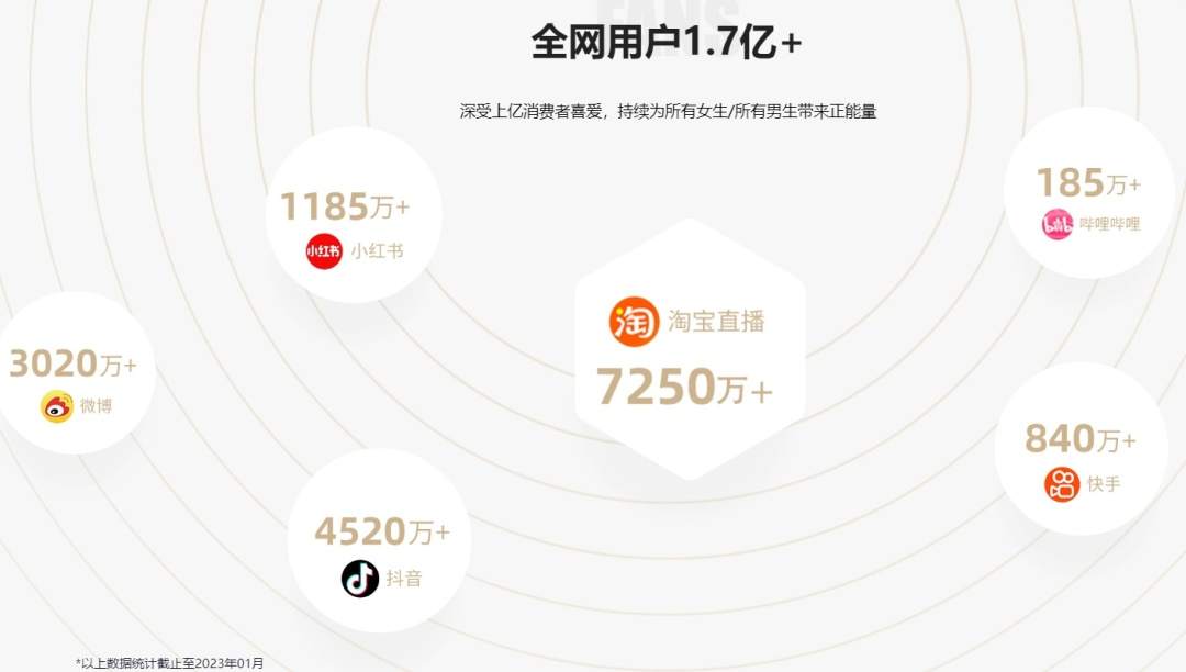 美腕官网截图 该公司自成立以来,成功孵化并运营了“李佳琦直播间”“奈娃家族”“李佳琦新品秀”“李佳琦小课堂”等众多IP,覆盖全网1.7亿用户。李佳琦直播间定期开播,品类涉及美妆、时尚、生活、食品等,截至2023年1月份,合作品牌数超过4000个。第三方数据显示,2022年,美腕以超650亿元的GMV(商品零售总额)高居行业榜首。