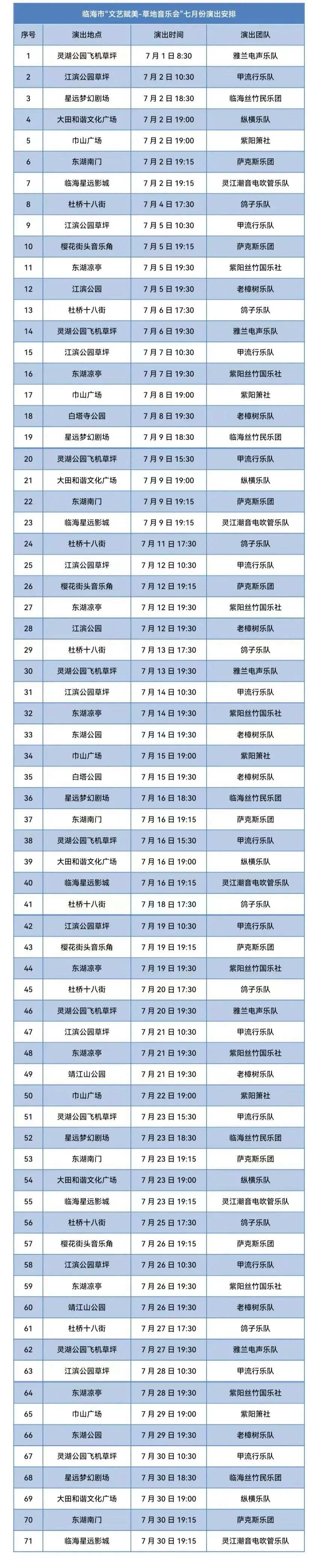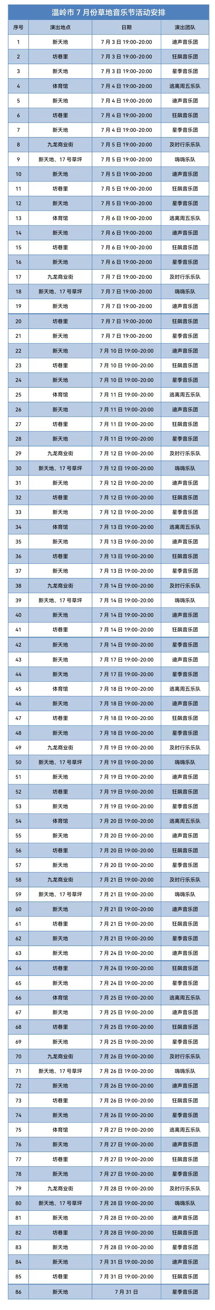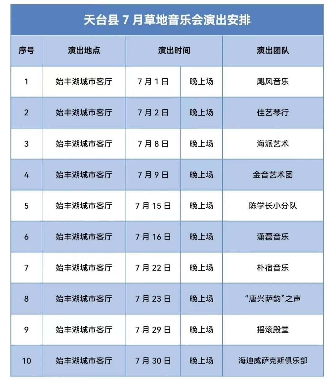 7月,台州各地继续好音乐不断