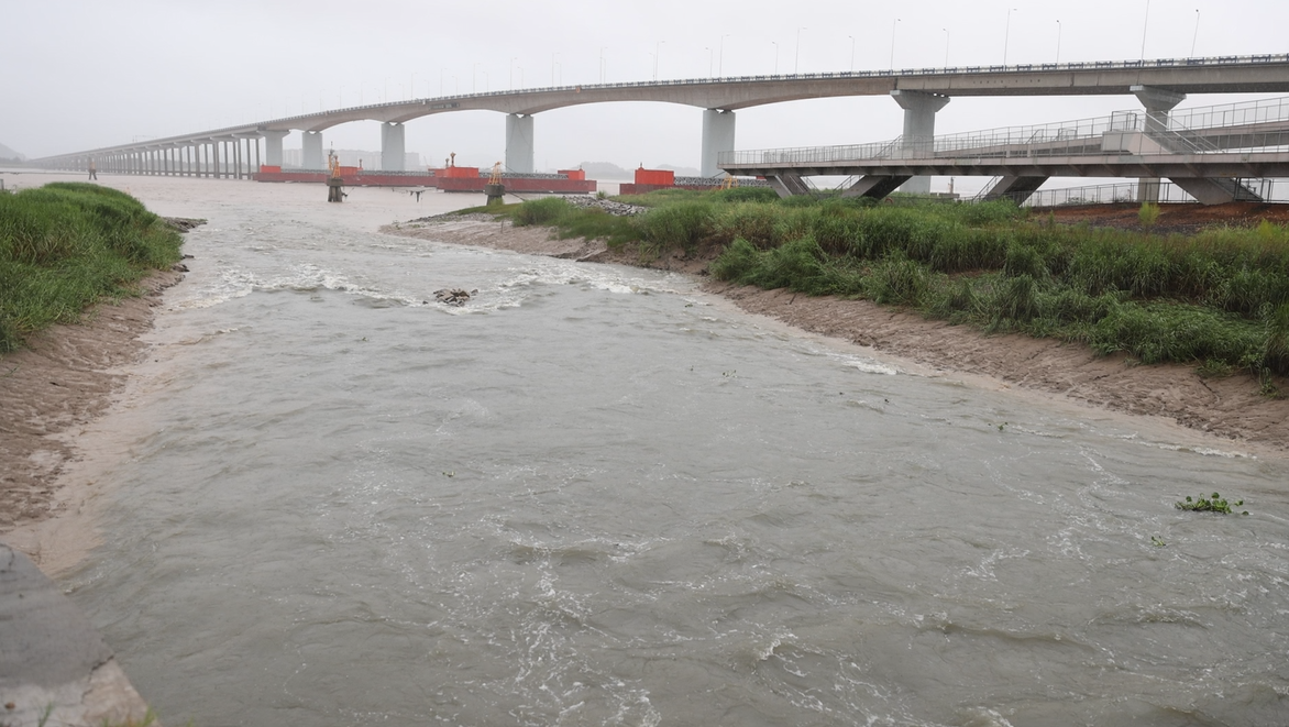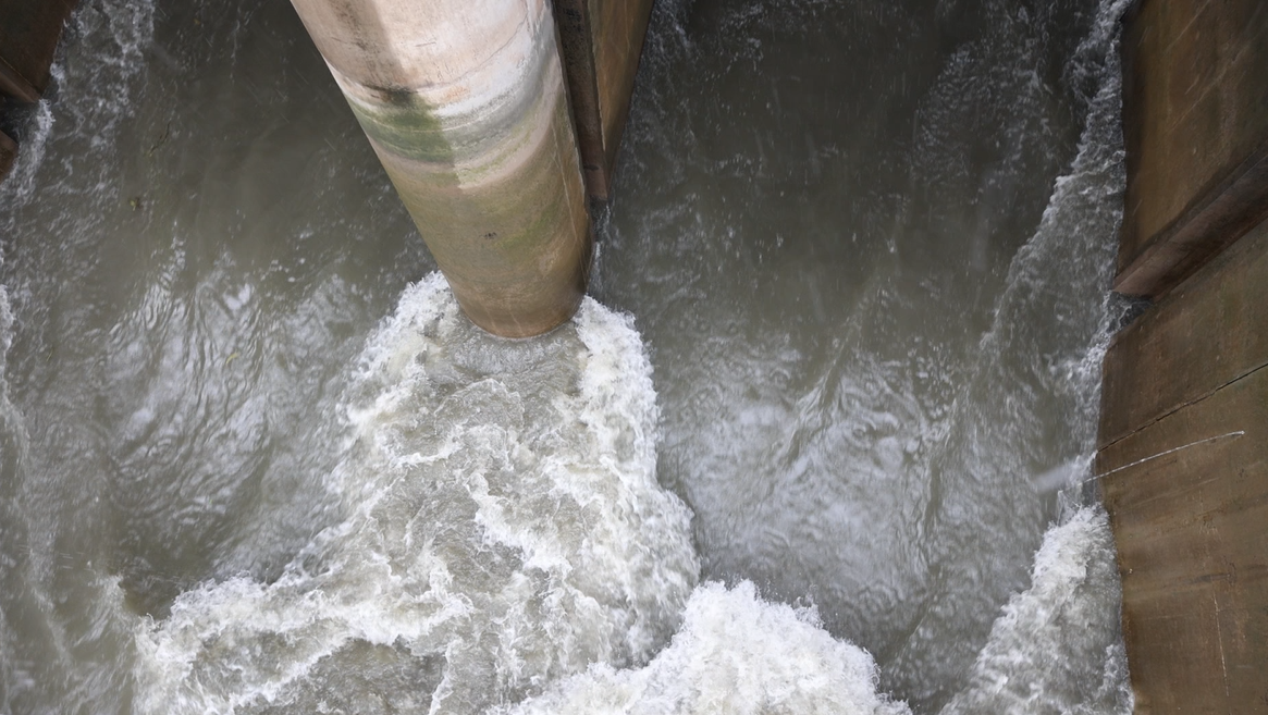 台风“杜苏芮”带来的强降雨,导致我市内河水位上升。为预防内涝,今天,我市部分内河打开闸门排涝,确保水位在汛限以内。