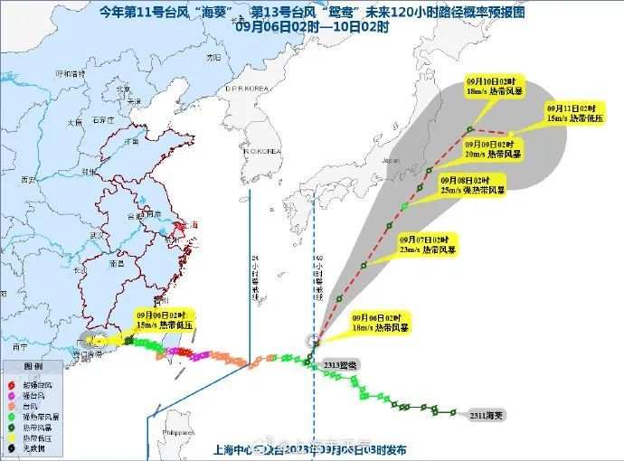 预计,“鸳鸯”将以每小时35-40公里的速度向北偏东方向移动,强度逐渐增强。