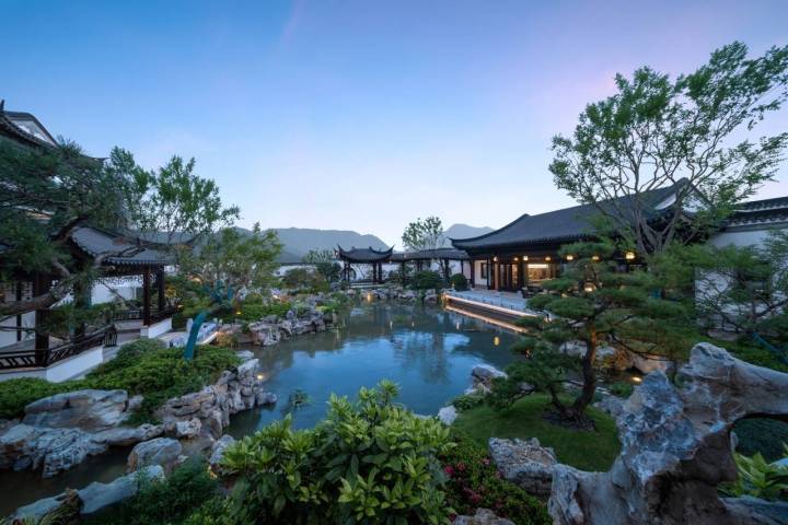 经过前期的规划和建设开发,山海映和示范区于今年5月份正式开放。“这个项目规划有建筑面积260-430平方米的合院和建筑面积185-210平方米的叠墅。从打造手法上,我们汲取台州独有的千年和合文化,打造了‘门、庭、园’三进礼序;汲取拙政园、留园等苏州园林精髓,打造了荷韵十二景。我们想做的不只是一个产品,更想传递一种生活理念,打造一种生活方式。”众安集团台州公司总经理兼山海映和项目总经理周海波介绍道。此次酒店的签约,也意味着项目周边的配套建设又有了进一步完善。