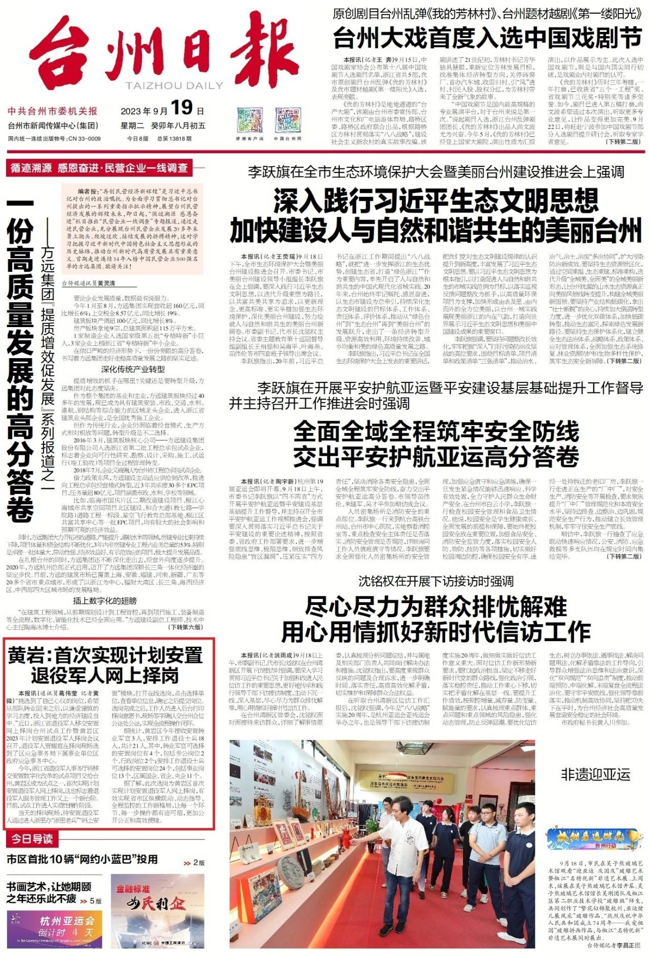 今年,浙江省退役军人事务厅将移交安置数字化改革的试点项目交给台州,黄岩区成为试点之一,首次实现计划安置退役军人网上择岗,这也标志着退役军人服务管理工作又上了一个新台阶。目前,试点工作进入实质性操作阶段。