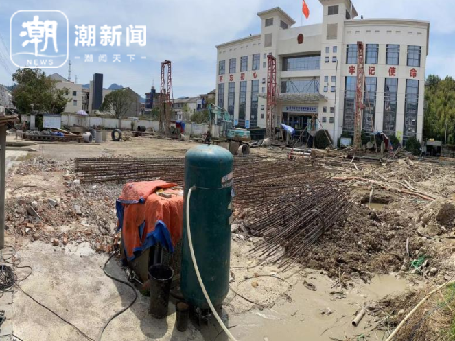 施工现场图 该项目建设地点位于黄岩区北洋镇镇政府内。项目总用地面积3335平方米,占地面积841.9平方米,总建筑面积6712.7平方米。项目主要建设1幢地下一层、地上五层的建筑,其中应急中心4360平方米,门卫40平方米,地下建筑2312.7平方米,配备应急设备、防汛防灾设备、消防车辆等,机动车停车位44辆,非机动车停车位88辆。