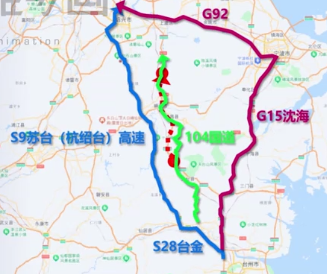 绕行建议 施工期间,前往杭州方向的车辆建议绕行S28(台金)—S9苏台(杭绍台),G15(沈海)—G92(江苏湾环线)高速或改走104国道;同时因高速部分路段危化品车禁行,往杭州方向的危化品车请提前规划路线,注意避开禁行路段。