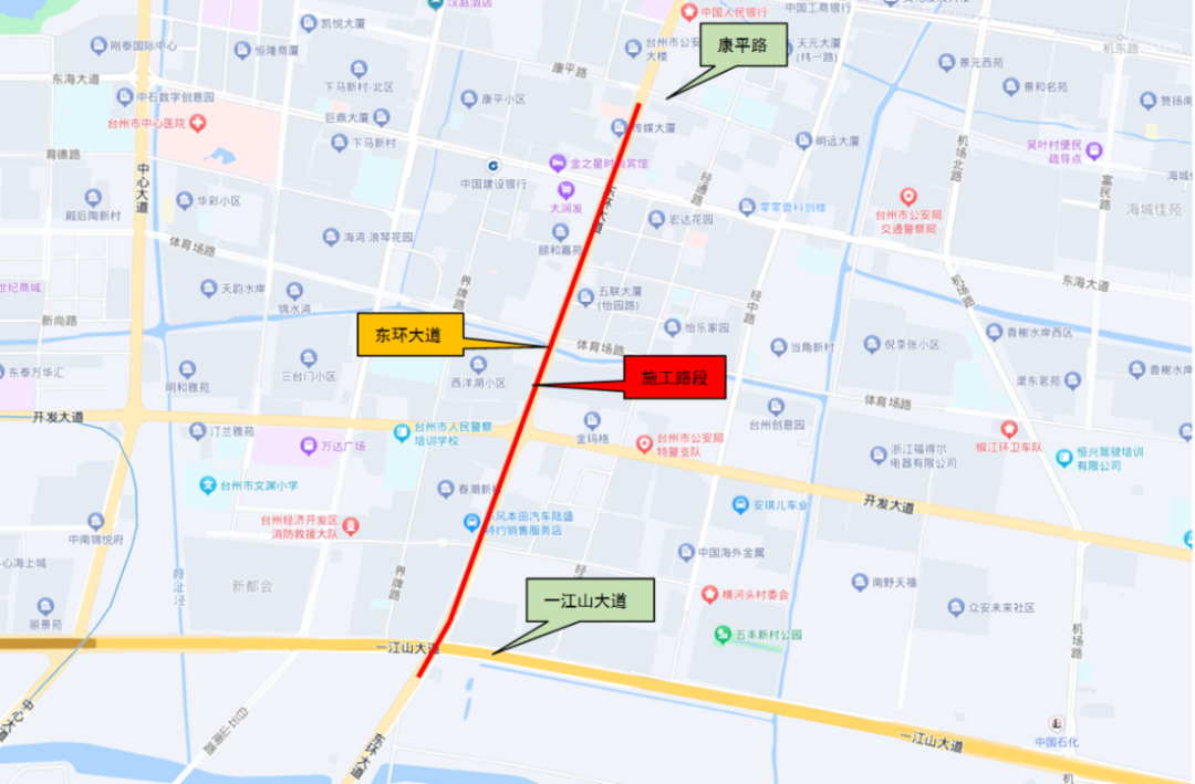 特别提醒 台州市区这些路段 有施工 注意交通限行 因施工需要,根据《中华人民共和国道路交通安全法》有关规定,公安机关交通管理部门将对下列三处路段临时调整交通管理措施。