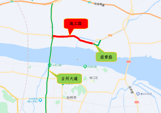 S225大路线 自2023年10月17日起至2023年11月30日止。对S225大路线(台州大道-前章路)分段分时半幅封闭施工,另外半幅双向通行。