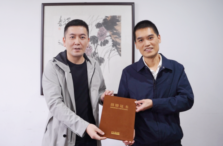 温峤镇党委副书记、镇长吴永平代表镇党委、政府接收温岭市博物馆送来的捐赠证书。
