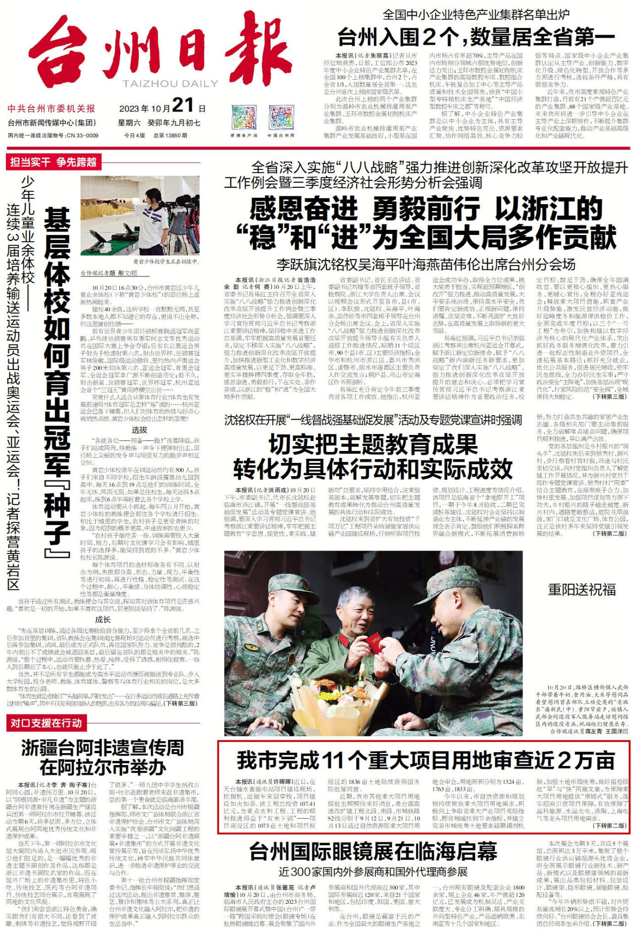 近期,我市其他重大项目用地报批也频频传来好消息,甬台温高速改扩建工程北段、南段、市域铁路S2线分别于9月12日、9月21日、10月13日通过自然资源部重大项目用地会审会,用地面积分别为1324亩、1765亩、1833亩。