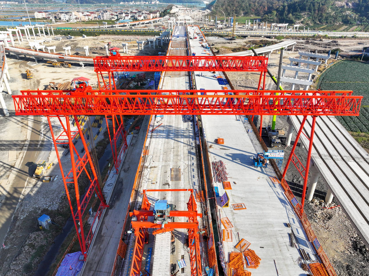 11月28日,甬台温高速至沿海高速三门联络线TJ04标段施工现场,项目组充分利用良好天气抢工期、赶进度,多节点发力,不断推进项目建设。