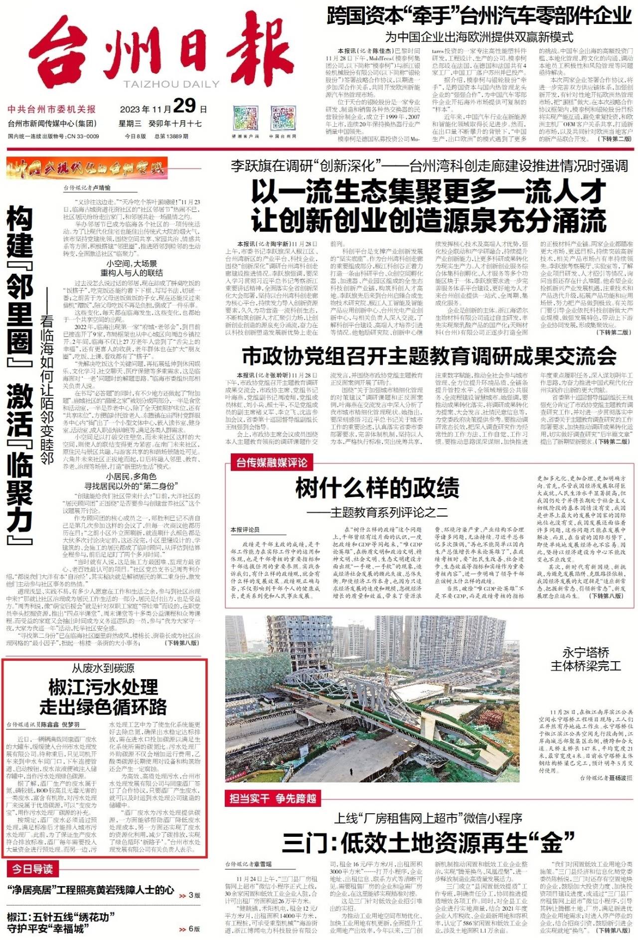 “酒厂废水为污水处理提供碳源,一方面能够帮助酒厂降低废水处理成本,另一方面还实现了废水的资源化利用,减少了碳排放,实现了绿色循环‘新路子’。”台州市水处理发展有限公司有关负责人表示。