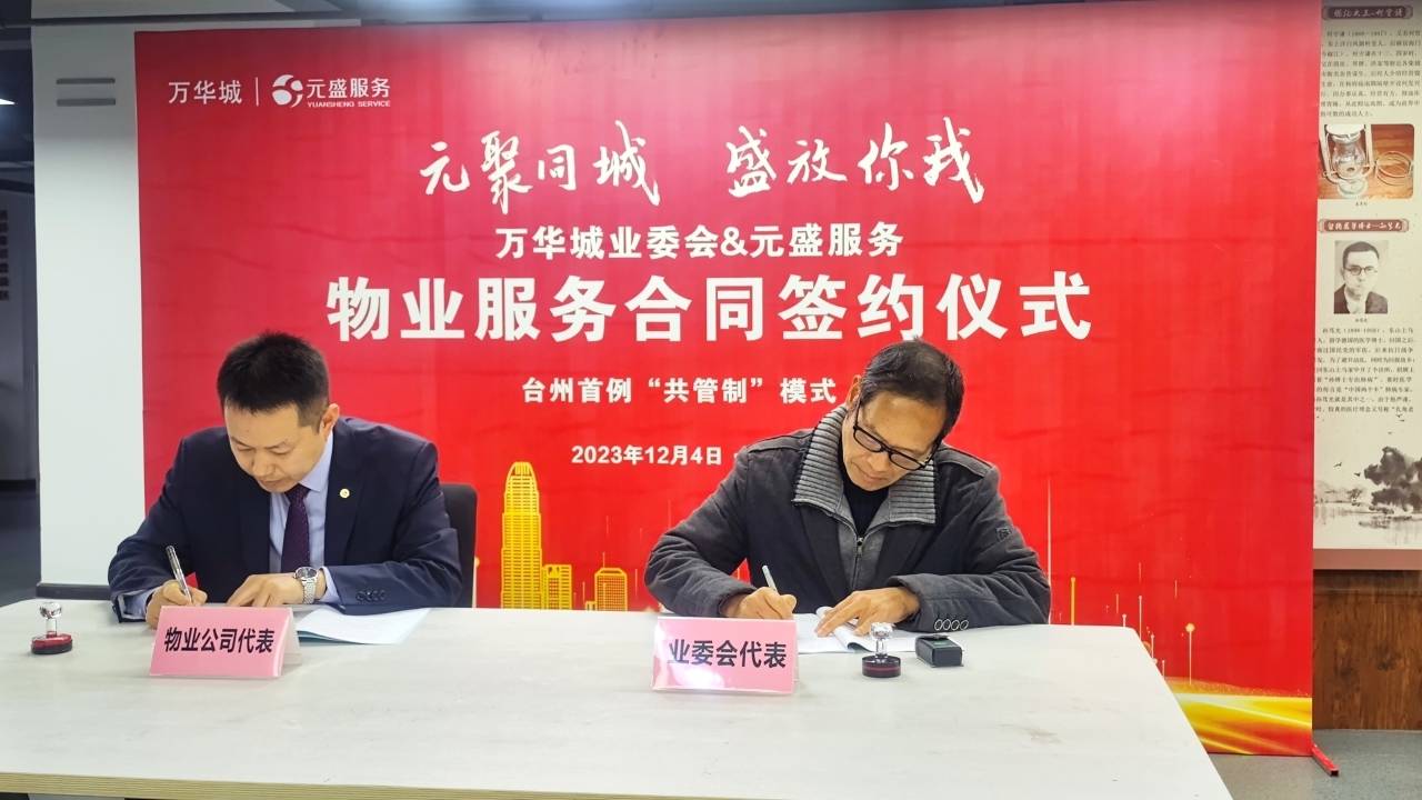 12月4日上午,椒江万华城业主委员会代表与浙江元盛城市服务有限公司代表共同签署了《椒江区万华城物业服务合同》,代表万华城正式开启业委会与物业公司“共管制”物业管理模式,这在台州尚属首例。