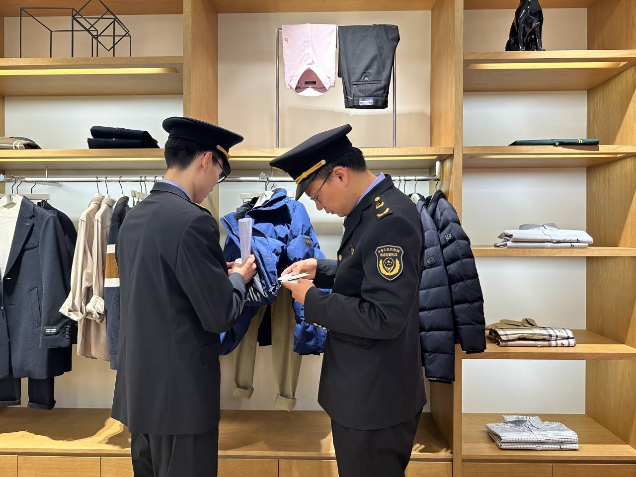 在市区多家商场,执法人员检查了羽绒服的标签标识、检测报告等,重点关注绒毛种类、绒子含量和充绒量标识情况。