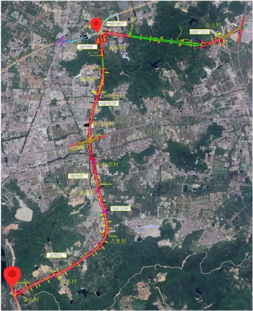 该工程起点位于路桥境内的规划文化路口与主线的交叉口附近,终点位于黄岩区院桥镇金山村,与台州干线公路网第五纵104国道临海城南至温岭大溪段工程十里铺支线相交,构成路桥与黄岩间的东西向通道。