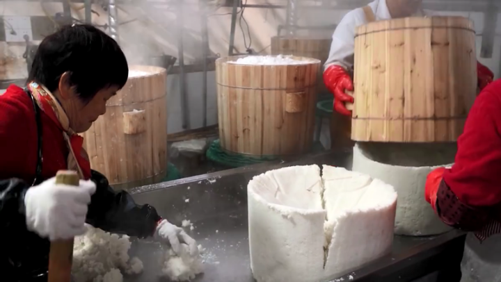 据了解,为了做出口感绵软的年糕,年糕加工厂特意定制了年糕机,聘请有30多年年糕制作经验的老师傅。从浸米、磨粉、蒸煮,再到加工成形,加工厂坚持采用传统制作工艺,保留住老底子的味道。凭借着良好的口碑,每年前来加工购买年糕的顾客络绎不绝。