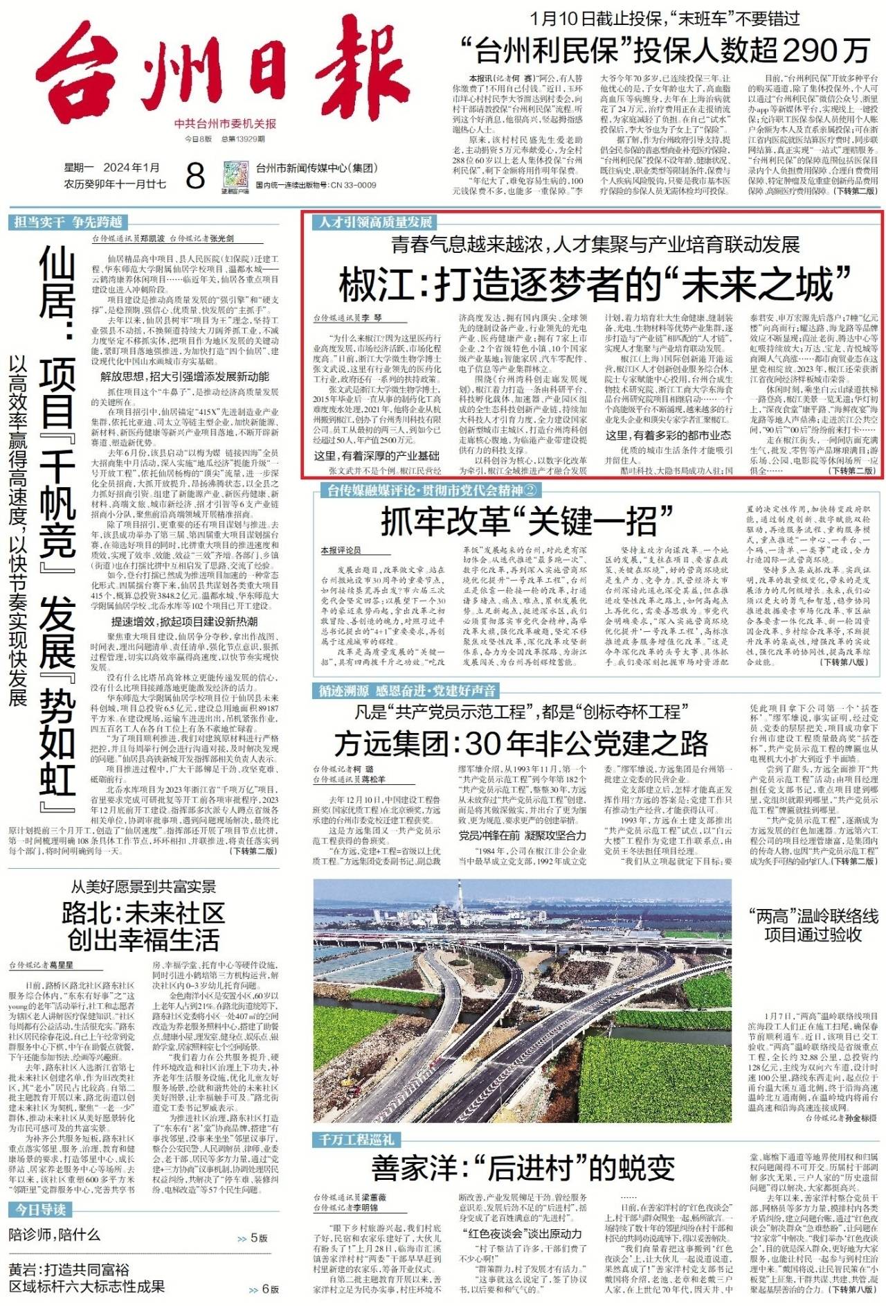 椒江(上海)国际创新港开港运营,椒江区人才创新创业服务综合体、院士专家赋能中心投用,台州合成生物技术研究院、浙江工商大学东海食品台州研究院项目相继启动……一个个高能级平台不断涌现,越来越多的行业龙头企业和顶尖专家学者汇聚椒江。