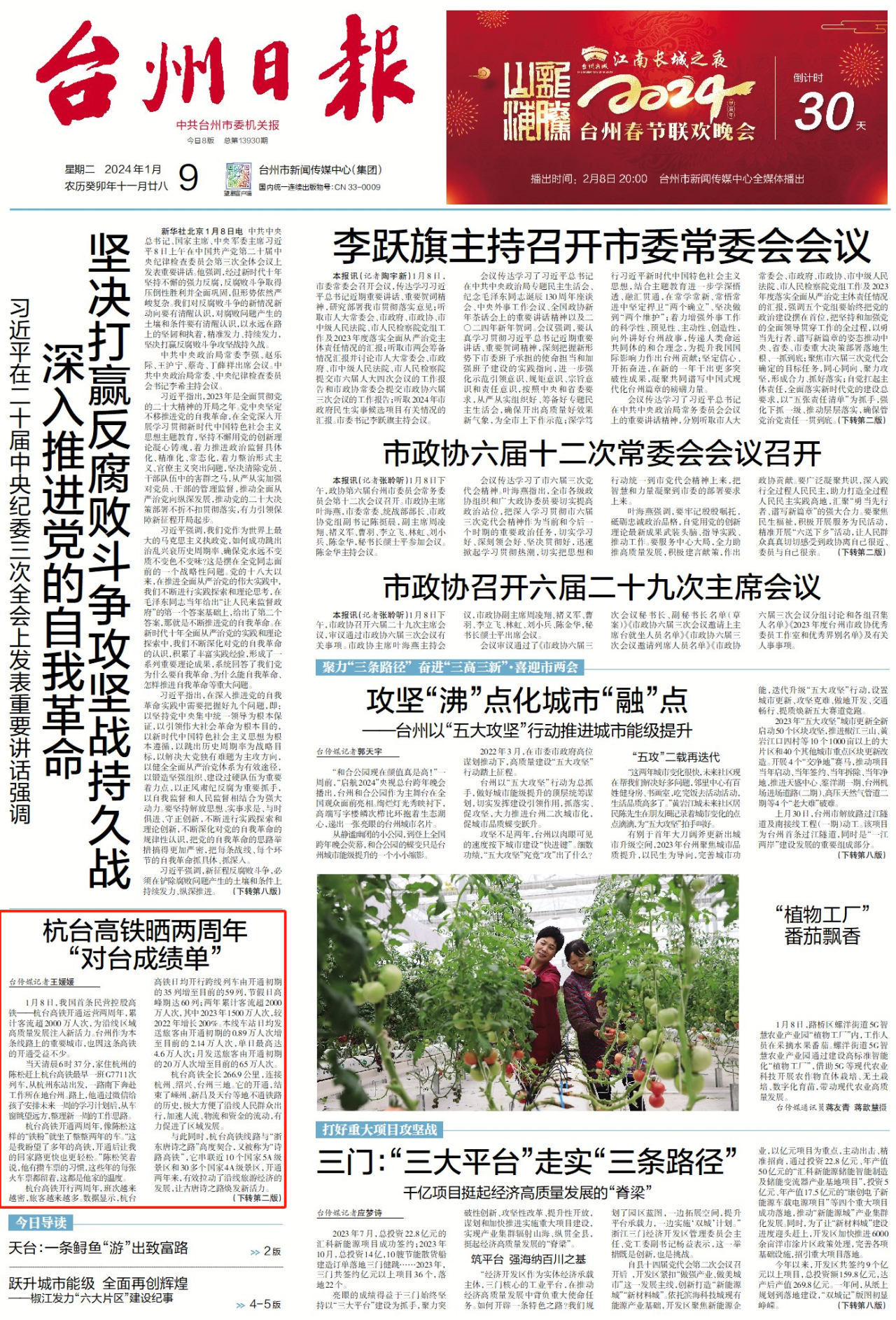 2024年1月8日 杭台高铁开通运营两周年 累计客流超2000万人次