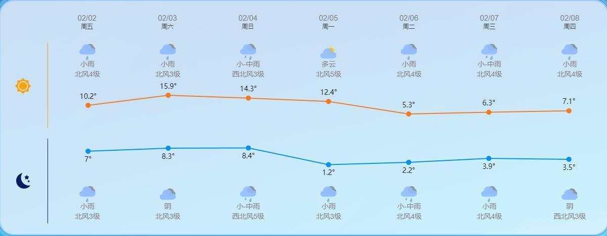 3~4日(周末)气温有所回升。新一股较强冷空气将于4日(周日)后半夜南下,下周前期气温明显下降,较常年同期偏低;8~9日(年廿九~除夕)早晨最低气温北部地区降至0~2℃,其它地区2~4℃。