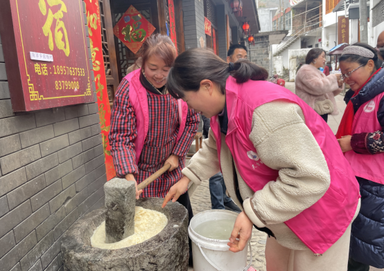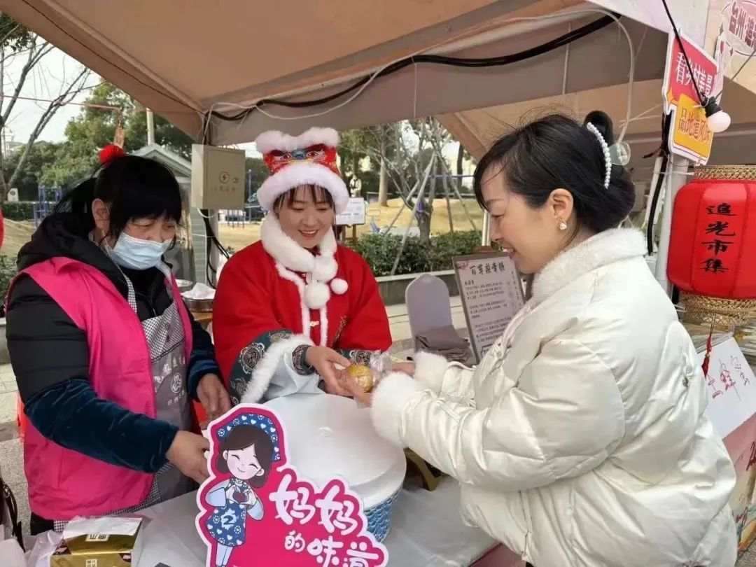 温岭市 温岭市大溪镇举行“妈妈的味道——巾帼助农迎新春·巧手扮靓年货节”主题活动。各村巾帼志愿队精心烹制的番薯枣、酒盅圆、梅花糕、菜头圆、糖圆、炒米饭、红糖姜茶等舌尖上的美味满溢广场。方德蜂园、仰天湖茶叶等巾帼摊位,让舌尖上的“美丽味道”、巧手中的“美丽工艺”,转化为奔向共富的“美丽经济”。