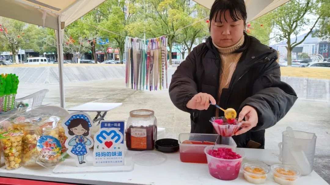 玉环市 玉环市清港镇妇联组织巾帼志愿者在2024台州味过大年暨“同善清港·八蛮迎春”年货节上,倾情推出“妈妈的味道”本地特色蕃粉圆,为前来选购年货、观看非遗演出的群众提供“家乡的味道”。年货节中,“妈妈的味道”摊位成为新春年货集市上一道亮丽的风景线,营造出“浓浓的年味”氛围,展现了 “在玉过新春” 巾帼志愿力量。