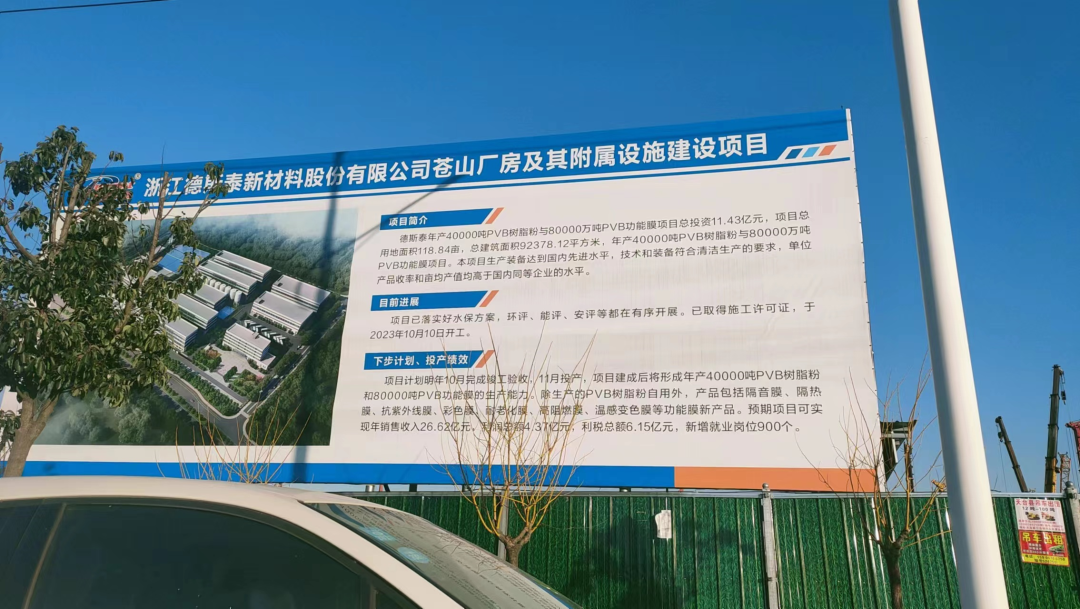 德斯泰年产4万吨PVB树脂粉与8万吨PVB功能膜项目落户苍山产业集聚区,占地120亩。成为万亩苍山产业园落地的第6家上市、拟上市企业。