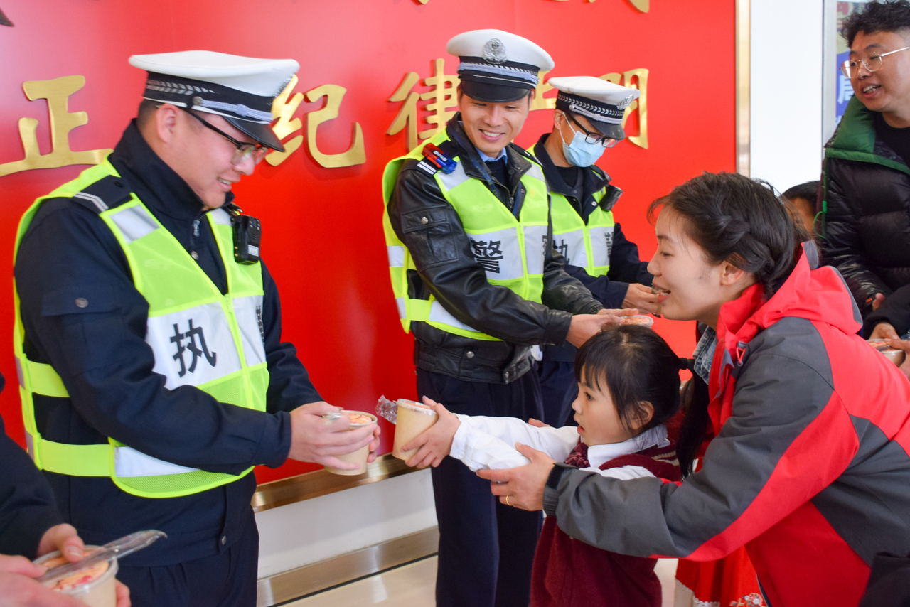 熬煮腊八粥现场。 风物煨香甜,最抚凡人心,一碗碗热腾腾的腊八粥赶走了冬日的寒冷,大家幸福地品味新鲜出炉的腊八粥,浓浓的幸福感温暖心田。活动最后,学生们将熬制好的腊八粥装进餐盒里,来到医院、社区、派出所以及城东、城西、横峰家门口青少年宫等场所设点发放,用行动共同传递幸福与美好。