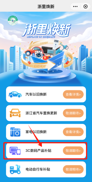 2、资格申领:消费者可通过“云闪付”首页“浙里焕新”以旧换新专区—“3C数码产品补贴”模块进行资格申领。