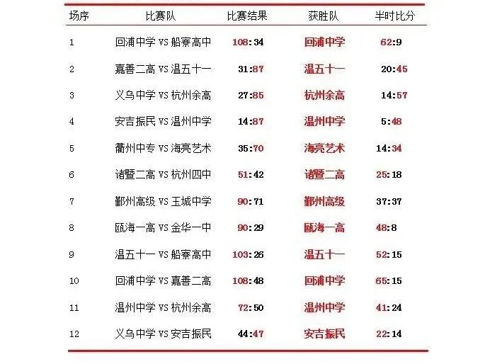 揭幕战分别在临海市回浦中学与青田县船寮高级中学、义乌中学与杭州市余杭高级中学之间展开。随着裁判哨响,双方队员迅速进入状态,展开激烈的争夺。精彩场面不断上演,快攻反击、突破分球、背身单打,联防死守、盯人紧逼……一招一式行云流水,攻防之间魅力无限。最终,回浦中学与余杭高级中学实力更胜一筹,分别战胜各自对手夺得开门红。